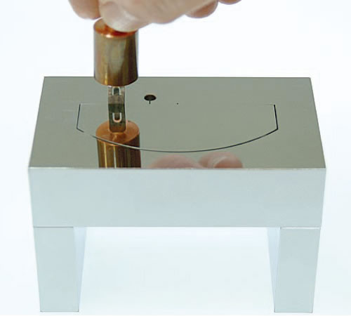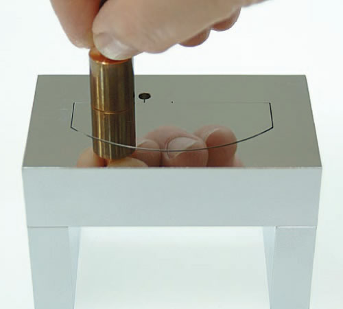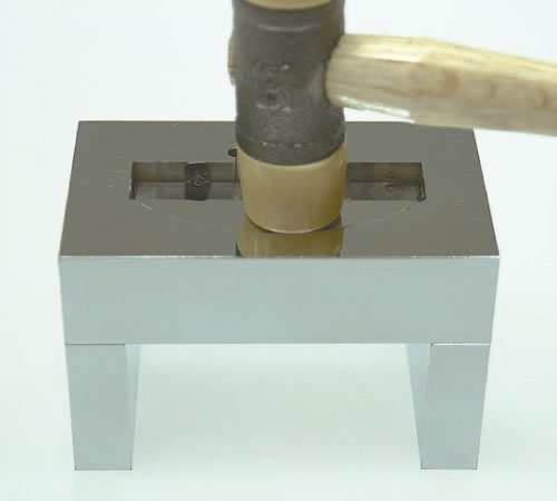 切り落とし加工が終了したら上からプラハンマーで軽く小突く、又は手でも押し出し出来ます。